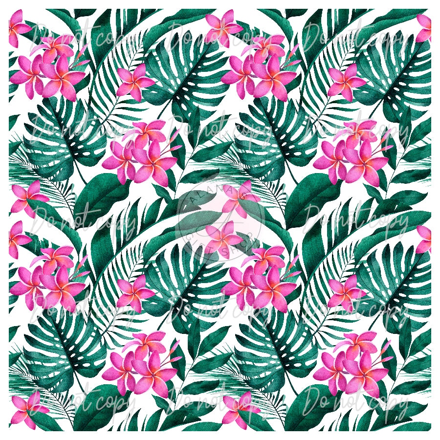 0142 Tropical Leaves Pink Flowers