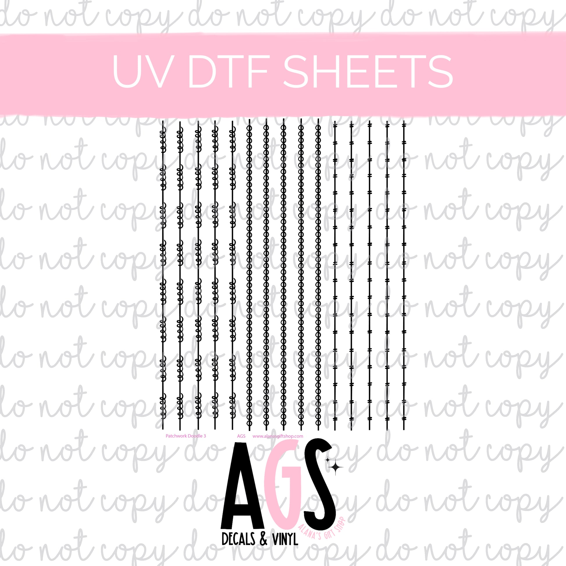 UV DTF SHEET 019 Patchwork Doodle Lines 3 Black